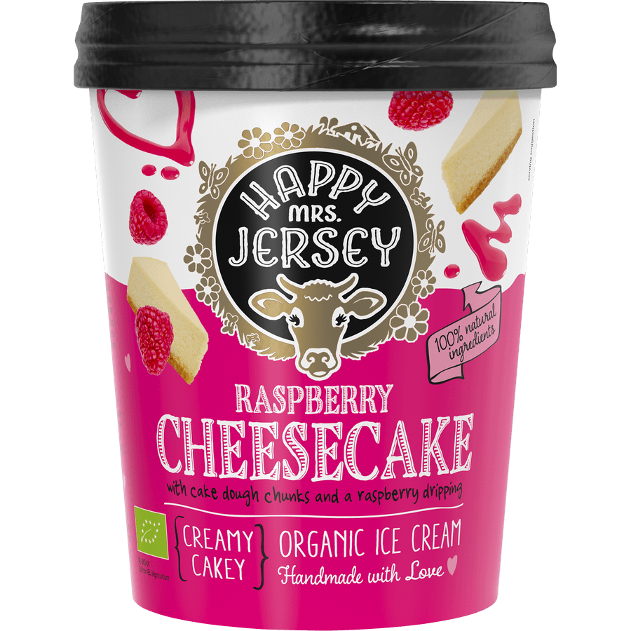 Raspberry Cheesecake Ice Cream 500mL Happy Mrs Jersey Bio