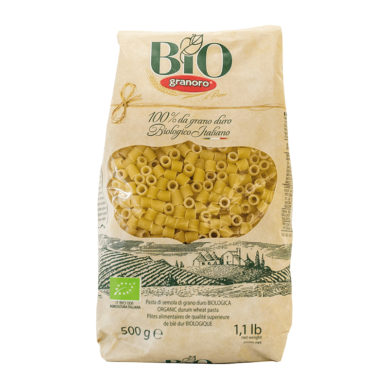 Organic Granoro pasta is produced from durum wheat semolina grown in Italy, according to the methods of organic farming, without the use of chemical fertilizers and pesticides, with respect for our nature and health. The technology is used only to ensure the excellent quality of the products.