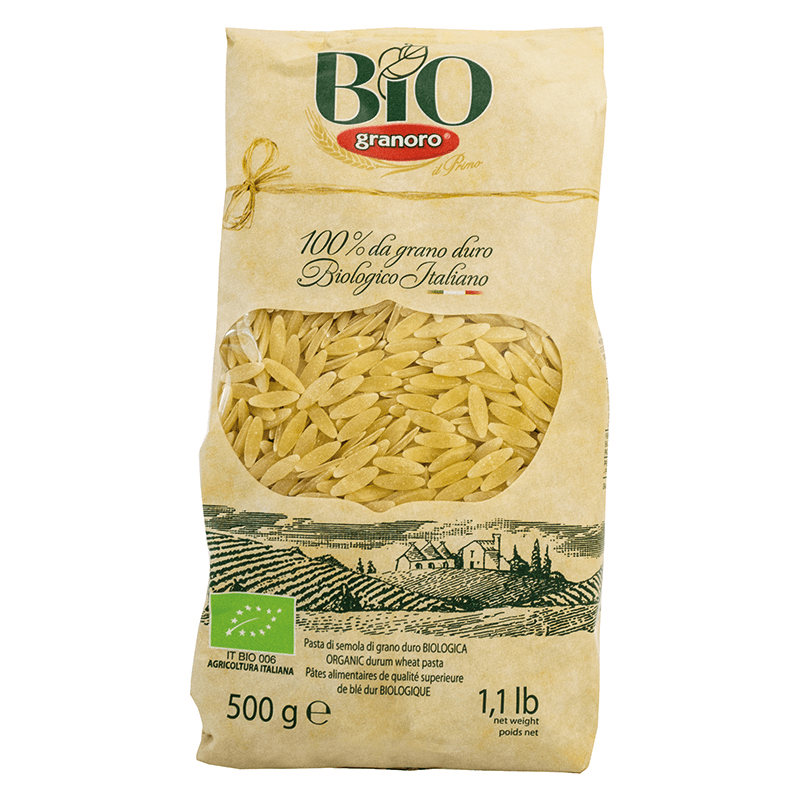 Organic Granoro pasta is produced from durum wheat semolina grown in Italy, according to the methods of organic farming, without the use of chemical fertilizers and pesticides, with respect for our nature and health. The technology is used only to ensure the excellent quality of the products.