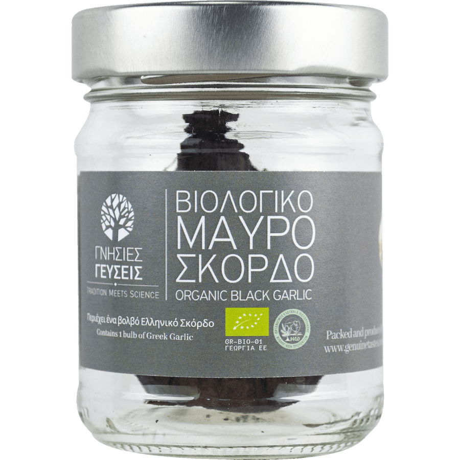 Organic Greek black garlic with many months of ripening that offers a smoky aroma to the food!