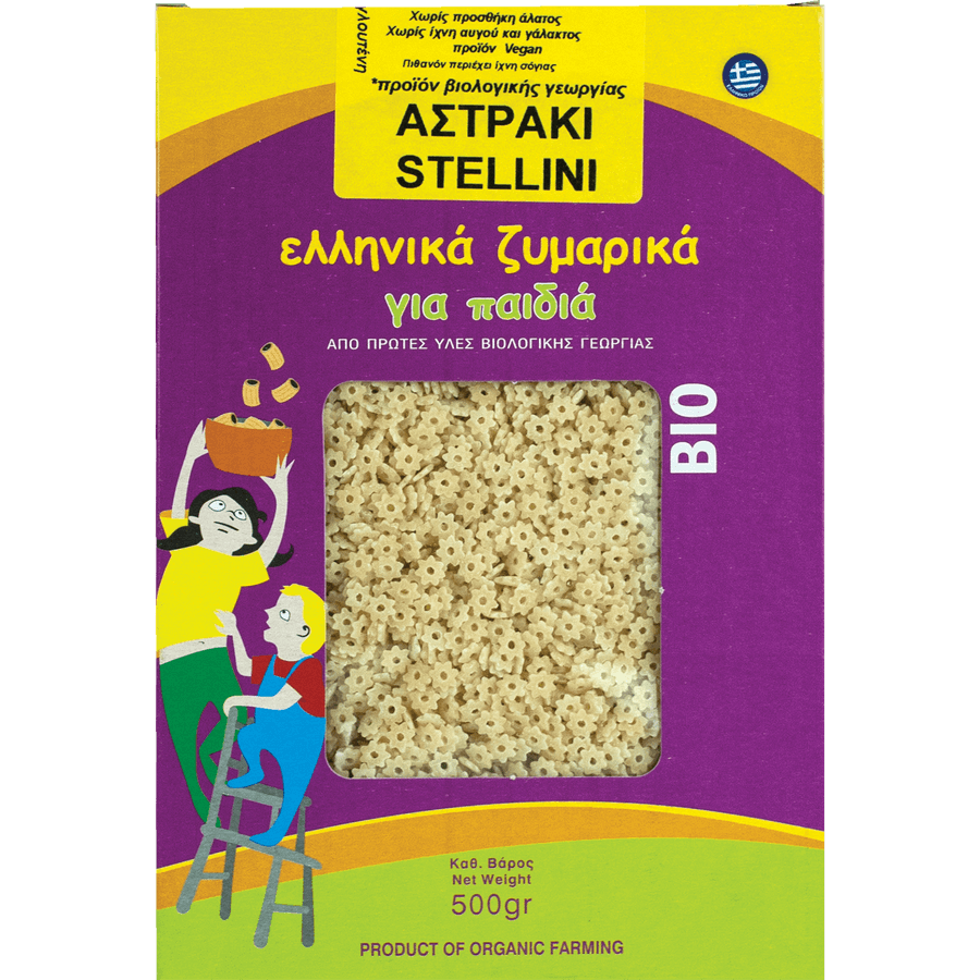 Organic stelline pasta from 100% durum wheat semolina. Biotrofos with love, passion and home care, in its laboratory, prepares organic pasta every day, using certified organic farming raw materials to offer you on your plate a uniquely quality and tasty product. Its goal is always to produce products with special care and with absolute dedication to the way they are produced, so that an excellent product reaches the Greek family.