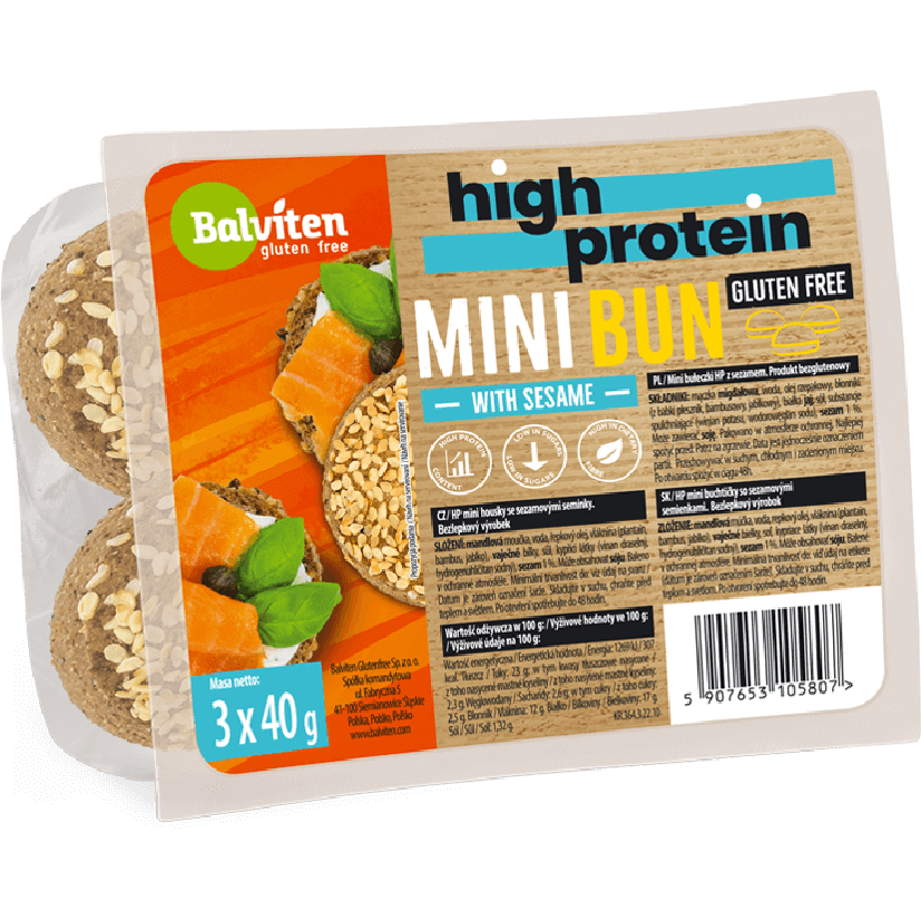 Ανακαλύψτε τα Mini Ψωμάκια για Burger με Σουσάμι χωρίς Γλουτένη από την Balviten με 100% φυσικά συστατικά και πλούσια γεύση. Κάθε συσκευασία περιέχει 3 πρακτικά ψωμάκια των 40g, τέλεια για το αγαπημένο σας burger ή σνακ, χωρίς γλουτένη και χαμηλά σε υδατάνθρακες. Υψηλή περιεκτικότητα πρωτεΐνης!