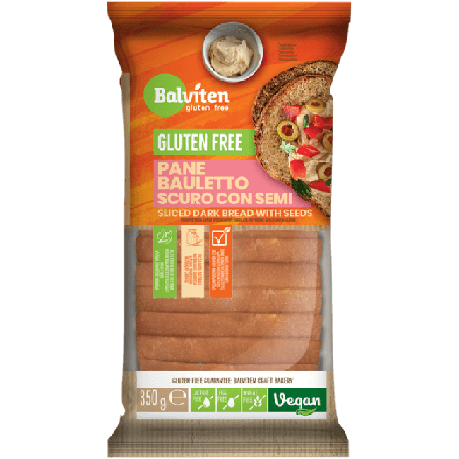 Ανακαλύψτε το Ψωμί Σκούρο με Σπόρους χωρίς γλουτένη της Balviten! Ιδανικό για υγιεινές επιλογές, με πλούσια γεύση και υπέροχη υφή, το ψωμί αυτό είναι η τέλεια λύση για κάθε στιγμή της ημέρας. Ιδανικό για όσους ακολουθούν διατροφή χωρίς γλουτένη, απολαύστε τη μοναδική του γεύση χωρίς να κάνετε κανέναν συμβιβασμό!