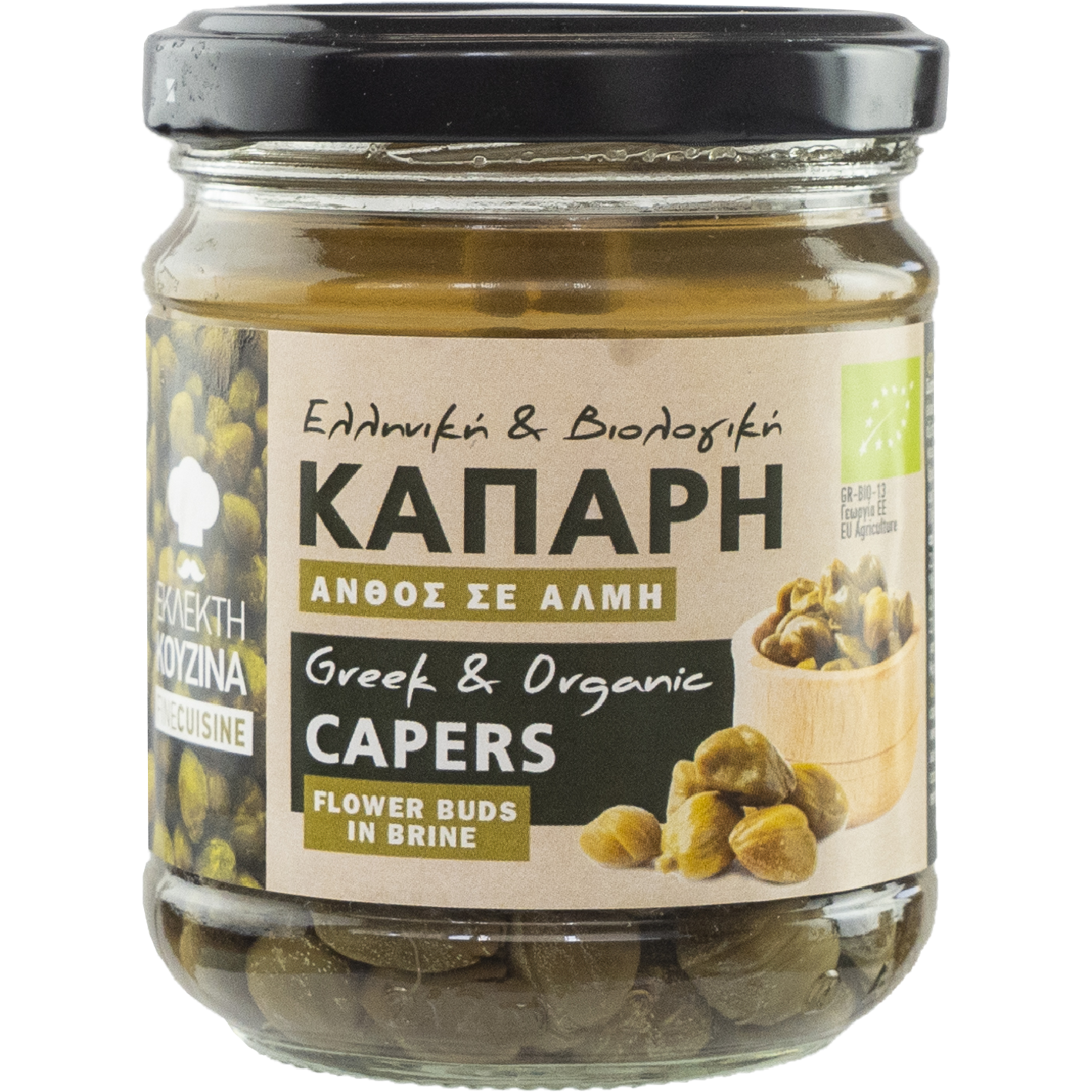 Από βιολογικές καλλιέργιες της Ελλάδας, η κάπαρη αυτή συλλέγεται με το χέρι και επεξεργάζεται με παλιό παραδοσιακό τρόπο. Είναι αρωματική και μπορεί να χρησιμοποιηθεί σε πολλές συνταγές, όπως πιάτα ζυμαρικών με βάση την τομάτα και κυρίως πιάτα ψαριών.