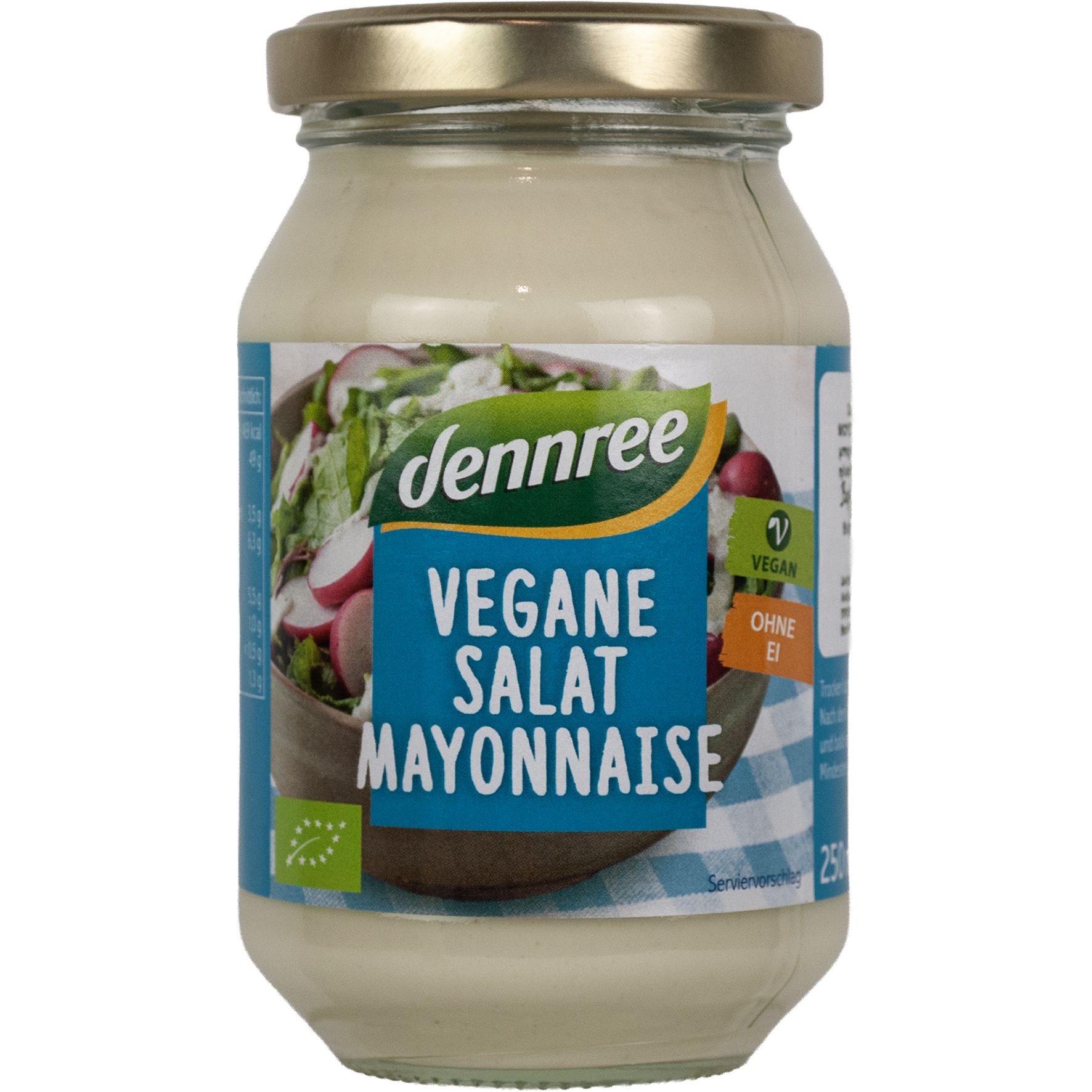 Απολαύστε την εκλεκτή, βιολογική, Vegan μαγιονέζα της Dennree. Παρασκευασμένη χωρίς αυγό, αποτελεί την ιδανική επιλογή για vegan δημιουργίες, σάλτσες και dressing, σάντουιτς και πατάτες τηγανιτές.
